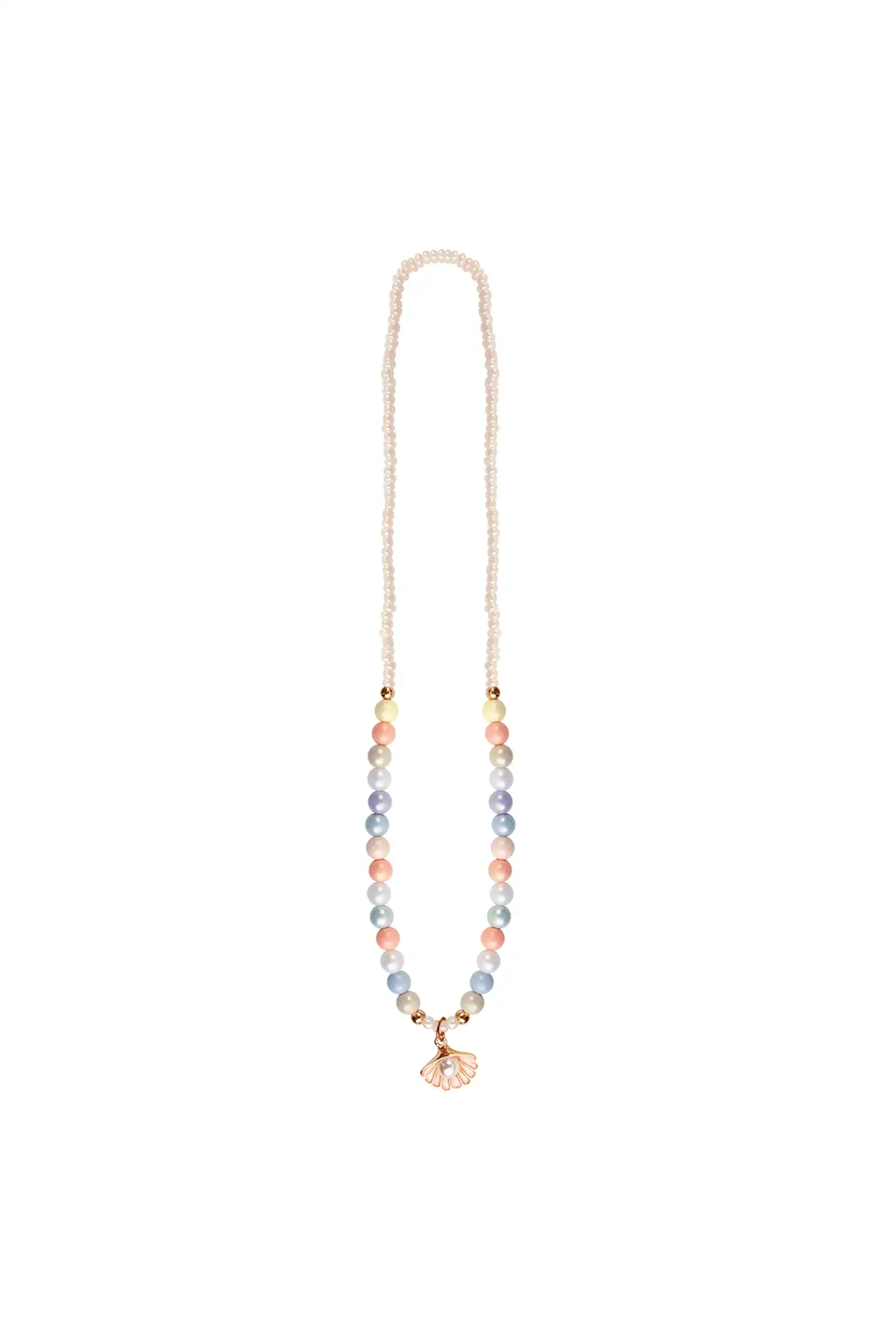 Make a splash with this pastel-perfect necklace! ✨ Strung with a mix of soft-hued beads and finished with a charming shell pendant (complete with a sweet little pearl inside), this necklace is ready to join any mermaid’s treasure chest. A playful mix of textures and colors makes it just the right accessory for under-the-sea adventures—or everyday sparkle on land.