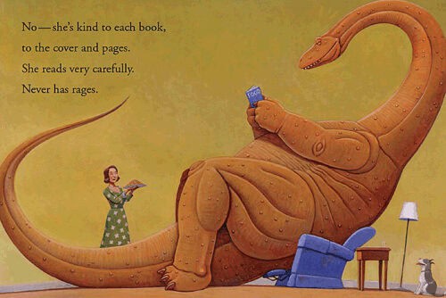 America’s favorite dinosaurs romp and roar as they soak books in the bathtub, throw them, and finally learn how to enthusiastically — and carefully — read them…with Mama and Papa at bedtime.