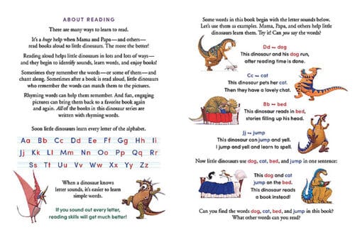 Get ready to laugh at this lighthearted, heartwarming, and funny approach to books! Children sometimes feel the task of learning to read is overwhelming, but the winning combination of rhyme and illustrations here provide a perfect way to present the subject in a comical, engaging, and nonjudgmental way. The contrast of enormous dinosaurs in kid-sized bedrooms (with human parents) adds irresistible humor as families explore the do’s and don’ts of reading. Both practical and engaging, this book shows dinosaurs getting into all sorts of reading-related trouble! But of course, in the end, the dinosaurs learn how to carefully handle their books, read out loud, and read a lot!Each book in the endlessly popular How Do Dinosaurs series is a combination of childish antics followed by a gentle lesson — with over 14.5 million books in print. This book, the twelfth, ends with pages designed to get your own little dinosaur excited about learning to read — especially this word: Dinosaur!