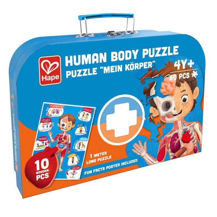 Learning about anatomy has never been so fun! With the Hape Human Body Anatomy Jigsaw Puzzle, kids piece together a beautifully designed puzzle, then add on wooden parts representing muscles, organs, and bones. It’s hands-on learning that feels just like play!