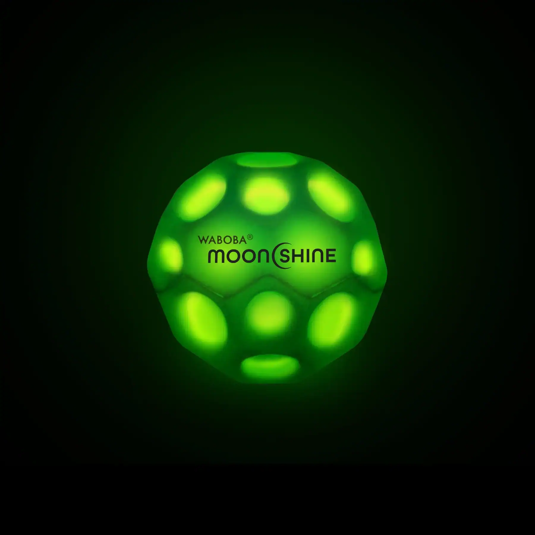Goodnight sunshine, hello Moonshine! The Waboba Moonshine Light-Up Moon Ball keeps the fun glowing long after the sun goes down. Just bounce to activate the bright LED light—then watch it flash for 7 seconds as it rockets into sky-high rebounds. Slightly smaller but lightyears ahead in nighttime fun!