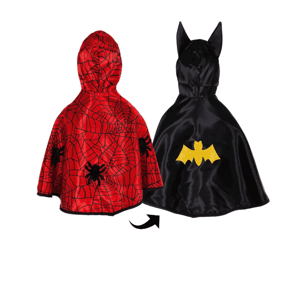 Double the hero, double the fun! This reversible Superhero Cape lets little ones switch from bat to spider in seconds, making every playtime an epic adventure.