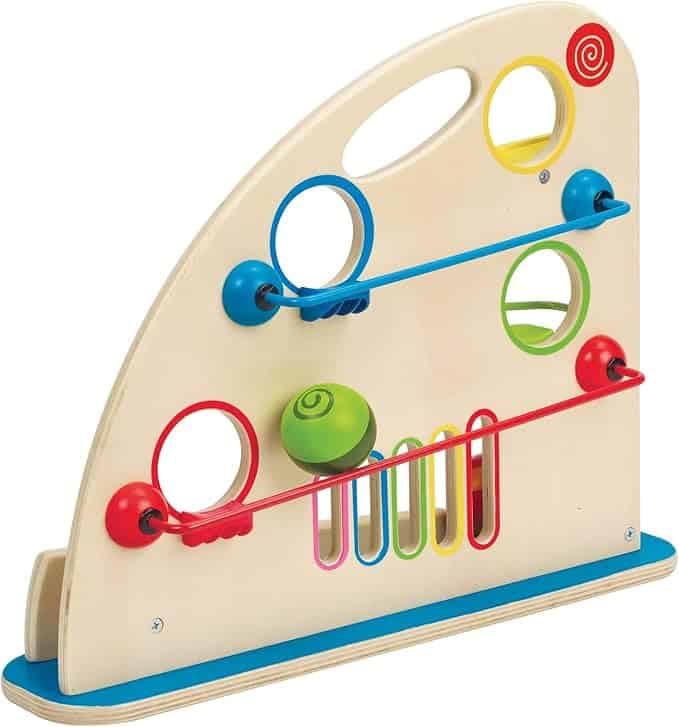 Get ready to race, roll, and ring the bell with the Roller Derby Maze! This colorful two-sided track isn’t just a ball run—it’s a science experiment disguised as a toy. Toddlers will love sending the wooden balls zooming down the slopes while grown-ups can sneak in fun chats about speed, direction, and gravity (aka: “Why does it go faster when we tilt it?!”).