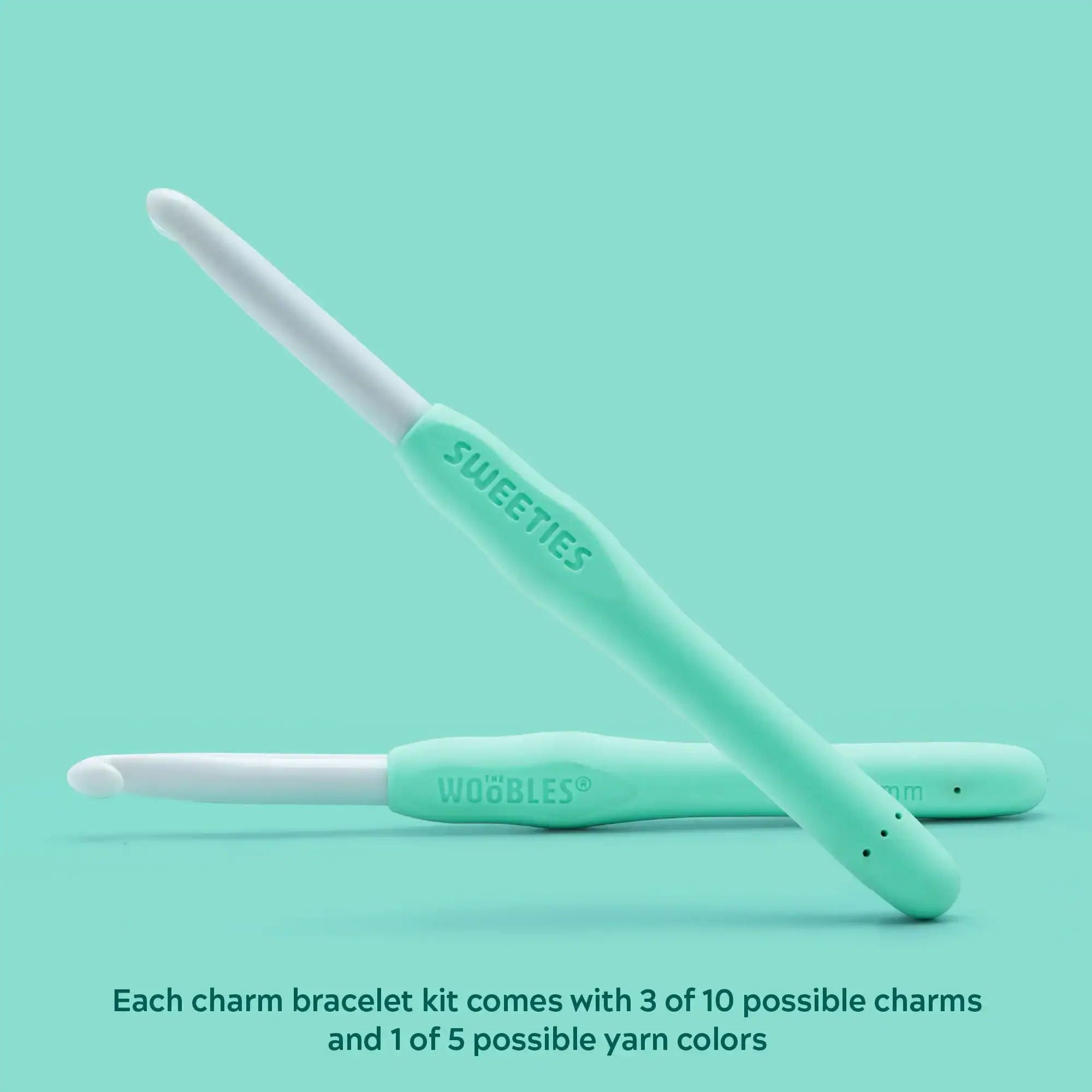A mystery treat that’s just too sweet to resist! The Secret Sweeties Charm Bracelet Kit lets you crochet your very own adorable bracelet, complete with three surprise dessert-inspired charms. With five possible yarn colors and a hidden combo of “Sweetie” Wooble charms, every kit is a fun little surprise waiting to be revealed.