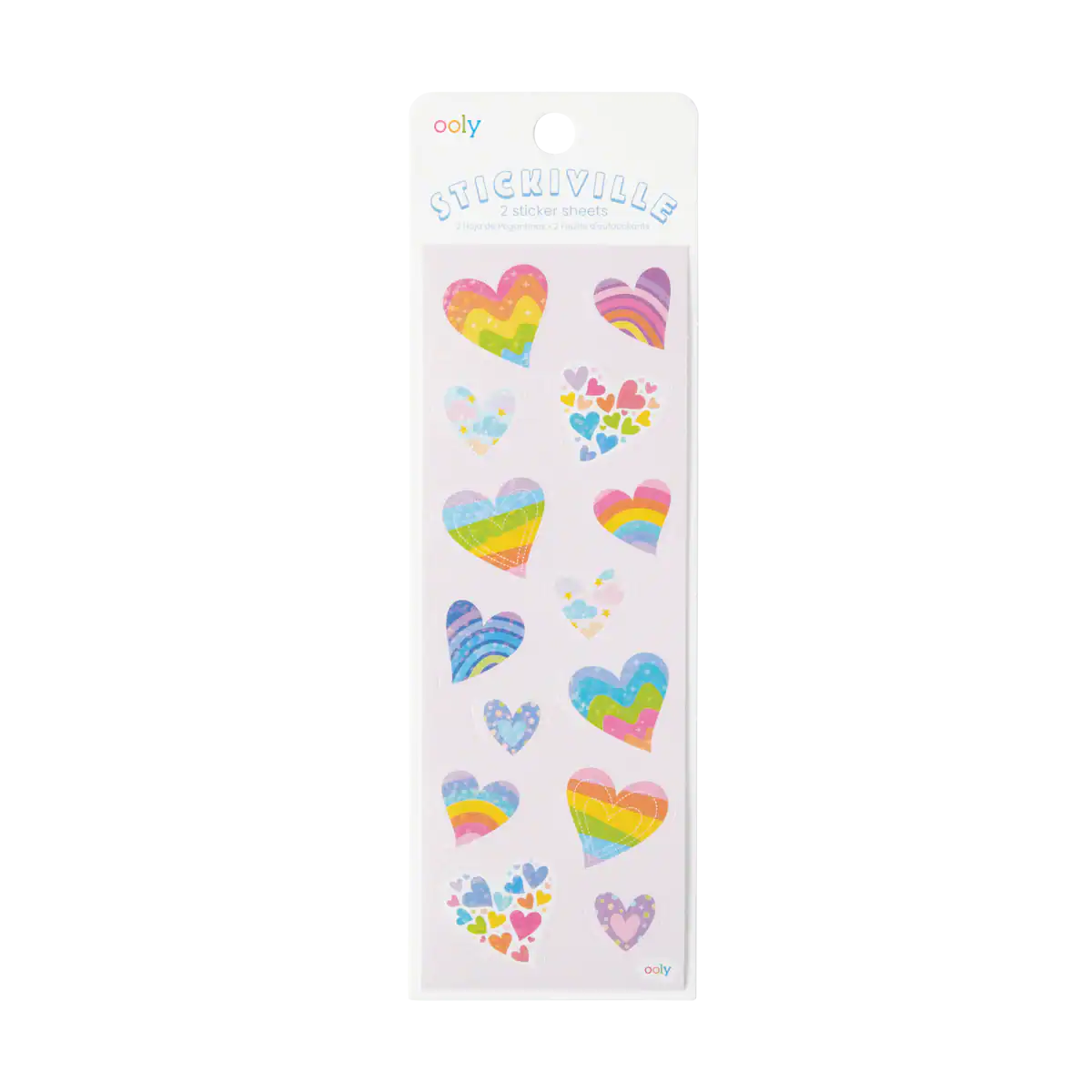 2 sheets packed with rainbow heart stickers