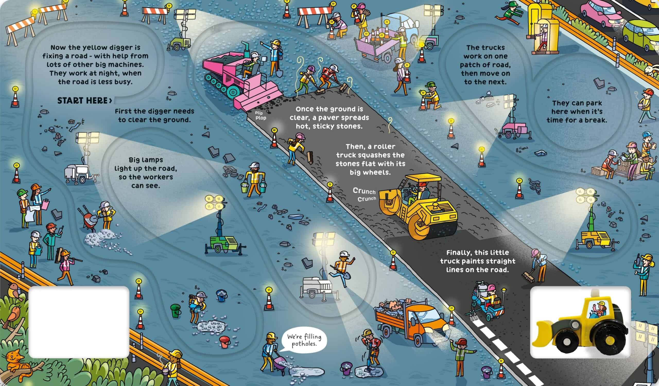 With colorful, detailed illustrations and fun facts sprinkled throughout, little builders can learn while they play. Just wind up the digger, place it on the track, and watch it go—over and over again!